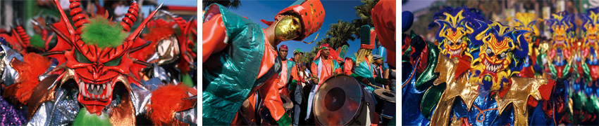 Na začátku roku oči návštěvníků přitahují velkolepé karnevaly a karnevalové průvody. Historická kombinace několika kultur od Taíno Indiánů, přes Španěle, Francouze, obyvatele Afriky nebo Haiti, přinesla do země řadu různých kulturních prvků, které společně vytvořily nádhernou kulturu a jedinečnou atmosféru země. V průběhu prvních měsíců v roce se Dominikánská republika roztančí ve víru nádherných karnevalů, které vám doslova vezmou dech. Tanec a přehlídka skvostně dekorovaných barevných kostýmů začínají nejdříve v Santo Domingu. V ulicích se radují, tančí a zpívají tisíce lidí nejenom z Dominikánské republiky, ale z celého světa. Velkou událostí je také karneval v La Vega, který společně s karnevalem v Santo Domingo patří mezi hlavní karnevaly v zemi. Pro oba karnevaly jsou typické nádherné kostýmy plné barev, strašidelné masky, bujaré průvody v ulicích, tanec a zpěv.
